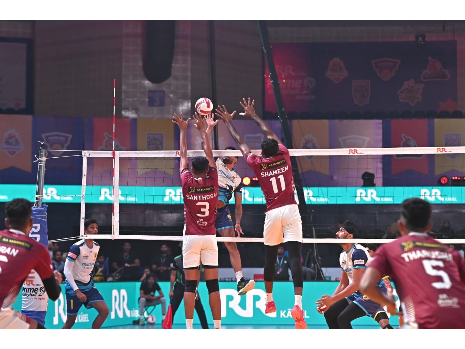 The second set saw Calicut regroup strongly, as Shameem and Santhosh combined to push Kochi on the back foot. Setter Moushin orchestrated Kochi’s plays effectively, but Bishnoi’s court coverage and super point helped Calicut stage a comeback and level the match 1–1.